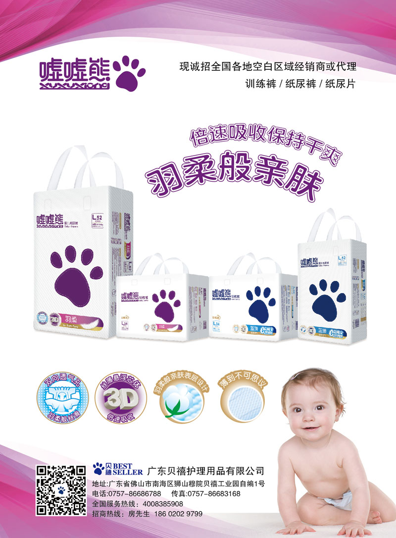 廣東貝禧護(hù)理用品有限公司是一家集研發(fā)、設(shè)計、生產(chǎn)和營銷為一體的大型嬰幼兒護(hù)理用品生產(chǎn)制造企業(yè)。公司主要生產(chǎn)嬰兒紙尿褲、拉拉褲、紙尿片及其他嬰幼兒護(hù)理產(chǎn)品。公司斥巨資引進(jìn)目前全球最先進(jìn)的新一代日本瑞光生產(chǎn)設(shè)備,能提供最先進(jìn)的產(chǎn)品和最穩(wěn)定的品質(zhì)保證。