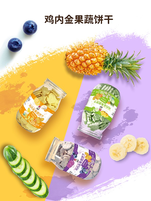 果蔬妃雞內(nèi)金果蔬餅干系列,有菠蘿青瓜味、藍(lán)莓紫薯味、香蕉玉米味,共三種口味,甄選優(yōu)質(zhì)原料,采用先進(jìn)工藝制作,加入雞內(nèi)金、果蔬等食材,特別添加海藻糖,健康美味有營(yíng)養(yǎng)。