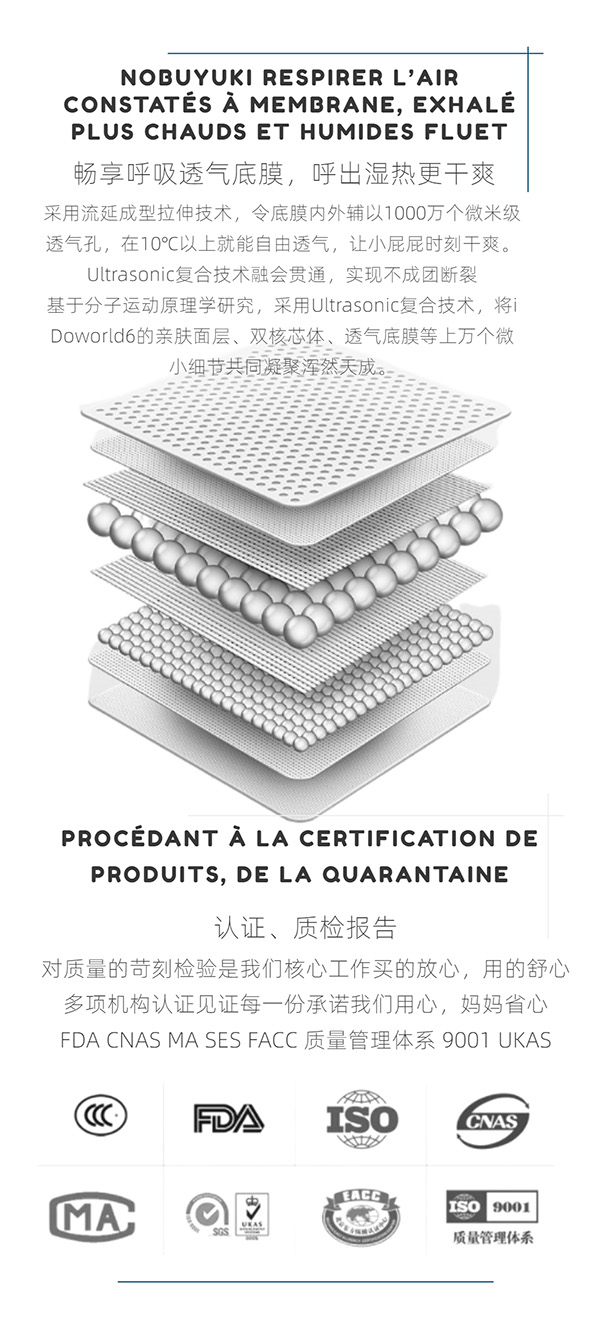 對(duì)質(zhì)量的苛刻檢驗(yàn)是我們核心工作。買(mǎi)的放心,用的舒心。(FDA CNAS MA SES FACC 質(zhì)量管理體系 9001 UKAS)多項(xiàng)機(jī)構(gòu)認(rèn)證見(jiàn)證每一份承諾我們用心,媽媽省心。