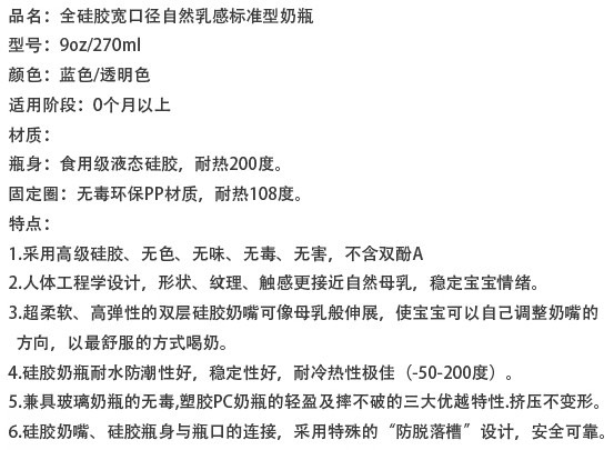 本品采用高級食品級矽膠(Liquid Silicone)制成,無毒、無味、耐高溫120℃可消毒、極好韌性、不易破、更耐用。本品對嬰兒牙床的發(fā)育和牙齦的保護(hù)有特殊效果。能促進(jìn)嬰兒牙齒的正常發(fā)育及臉部肌肉運(yùn)動。