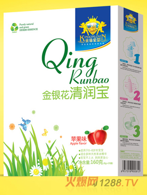 金盾愛嬰草本清潤寶針對嬰幼兒普遍存在的上火、體質(zhì)差的現(xiàn)象,根據(jù)傳統(tǒng)中醫(yī)理論,選取傳統(tǒng)中醫(yī)中用來清除內(nèi)火的天然植物原料蓮心、金銀花、山楂、麥芽、菊花為主要原料,結(jié)合現(xiàn)代生物科技, 特別添加;撬 、DHA、雙歧因子、蜂蜜、雞內(nèi)金研制出了新一代奶粉伴侶,科學(xué)預(yù)防上火、厭食。