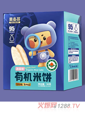 果條哥有機(jī)米餅,有水果味、蔬菜味、原味共三種口味,精選原料,有機(jī)大米含量達(dá)95%,添加濃縮梨清汁,不添加白砂糖、食用鹽,味道清甜,蓬松酥脆,入口易溶,健康美味,好吃易消化。