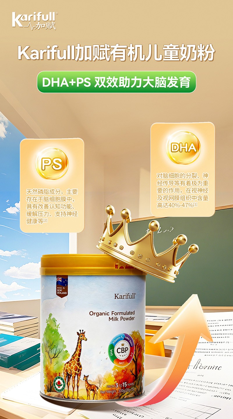 加賦有機(jī)一款通過(guò)有機(jī)認(rèn)證的兒童MCT配方奶粉,更是“兒童成長(zhǎng)精準(zhǔn)營(yíng)養(yǎng)方案”,3-15歲是兒童成長(zhǎng)的黃金期,5維成長(zhǎng)體系解鎖骨骼·健腦·護(hù)眼·免疫·吸收。