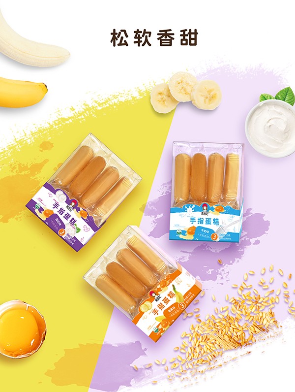 果蔬妃【手指蛋糕】生產(chǎn)過程中不添加人工色素、香精和防腐劑,堅(jiān)守安全配方,選用有機(jī)雞蛋和有機(jī)面粉,采用烘烤工藝,松軟香甜,有香蕉、牛奶、酸奶3種口味供寶寶選擇!